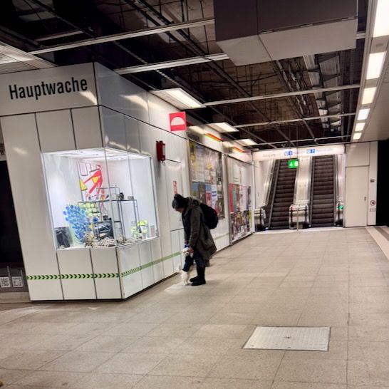 Die Kunststation Hauptwache zeigt Schulkunst mitten in der U‑Bahn‑Station Hauptwache – sieben Vitrinen, gestaltet von Schülerinnen und Schülern aus Frankfurt und Offenbach.